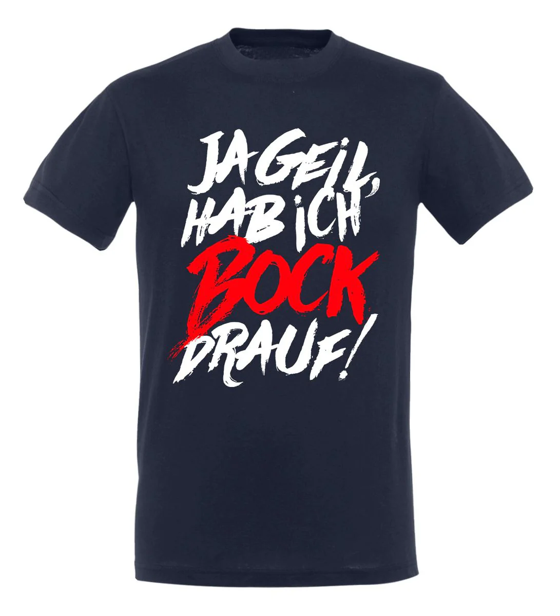 Das T-Shirt zeigt den Spruch "Ja Geil, Hab Ich Bock Drauf!".